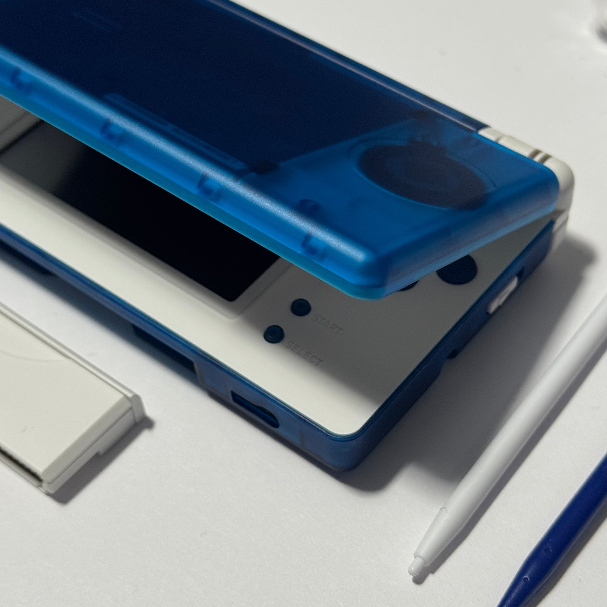 Nintendo DS Lite CUSTOM - Transparent Blue/White w/ Modded LED, Bundle!